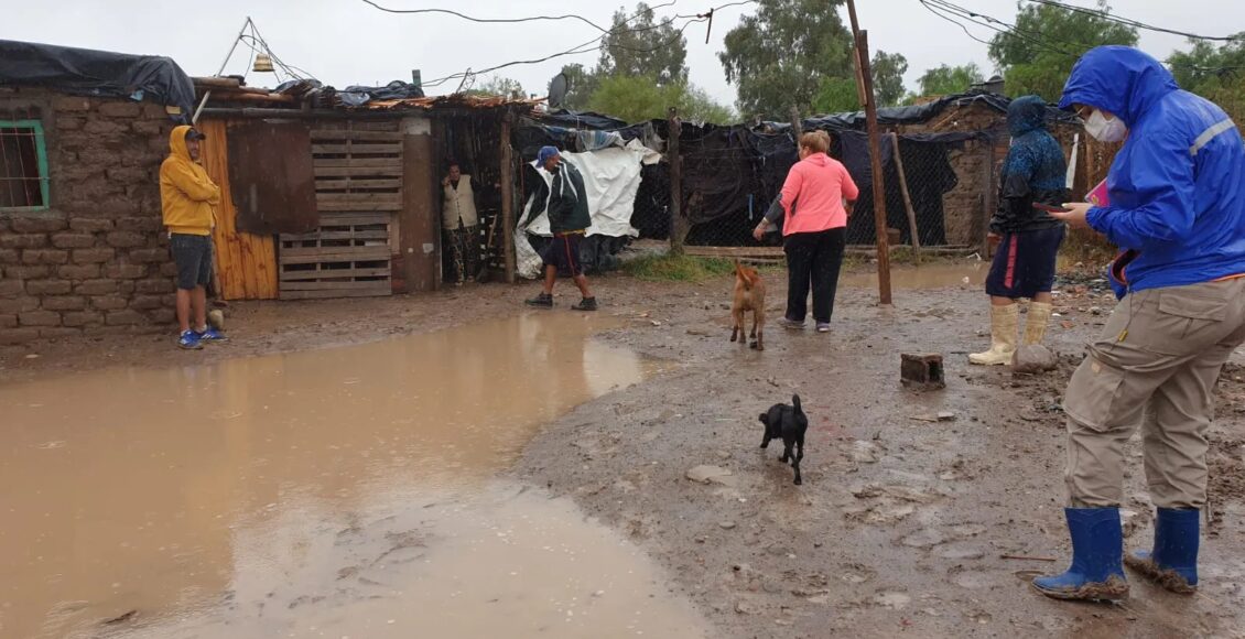 Efectivos de bomberos, policías y personal de Defensa Civil desplegaron operativos para asistir a los damnificados y evaluar la situación en cada localidad. En Albardón, el agua avanzó con fuerza en sectores como Las Lomitas y Villa Ampacama, complicando la circulación e inundando viviendas. El desbordamiento del Río Yakin dejó intransitable la calle Sarmiento en la localidad de El Rincón.