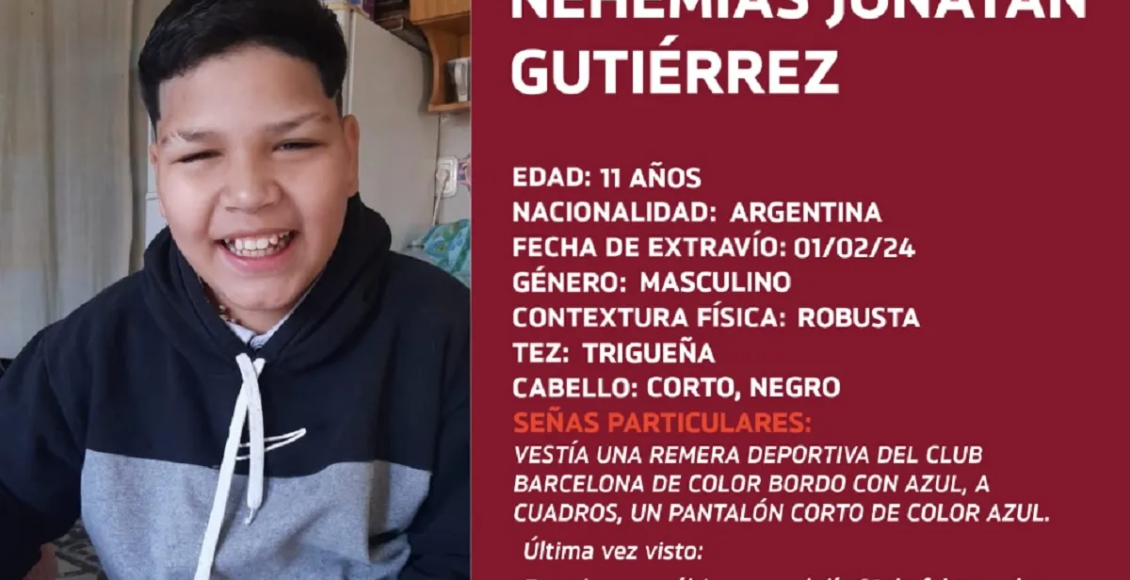 En las últimas horas se activó el programa provincial de búsqueda de personas extraviadas, denominado «San Juan Te Busca«, para dar con el paradero de Nehemías Jonatan Gutiérrez de 11 años. El menor fue visto por última vez este jueves a las 8.15 en el Hogar de Residencia Ferroviario.