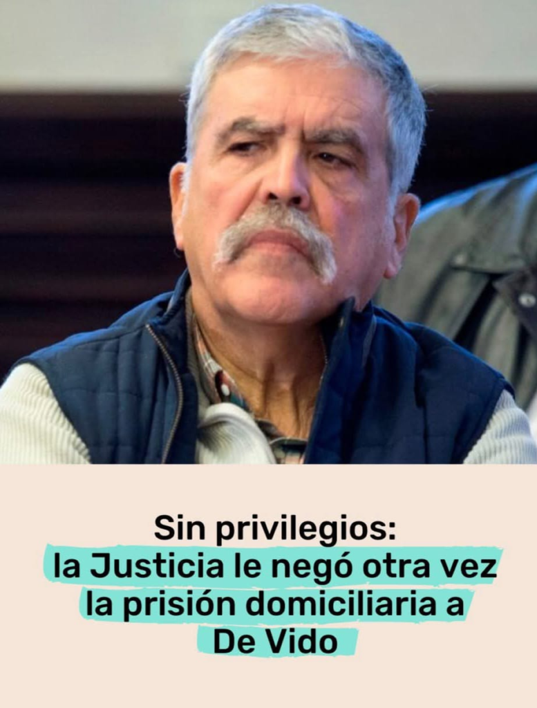 La defensa argumentó su edad avanzada y problemas de salud para solicitar el arresto domiciliario, pero el tribunal concluyó que las condiciones médicas pueden ser cubiertas adecuadamente dentro del establecimiento penitenciario. #DeVidoSeguiráEnprisiónComún