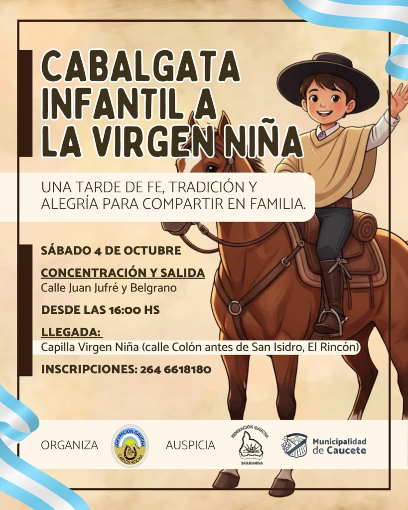 ¡Se viene una tarde especial para los más chicos y sus familias! Con fe, tradición y mucha alegría, la comunidad se prepara para la Cabalgata Infantil a la Virgen Niña.