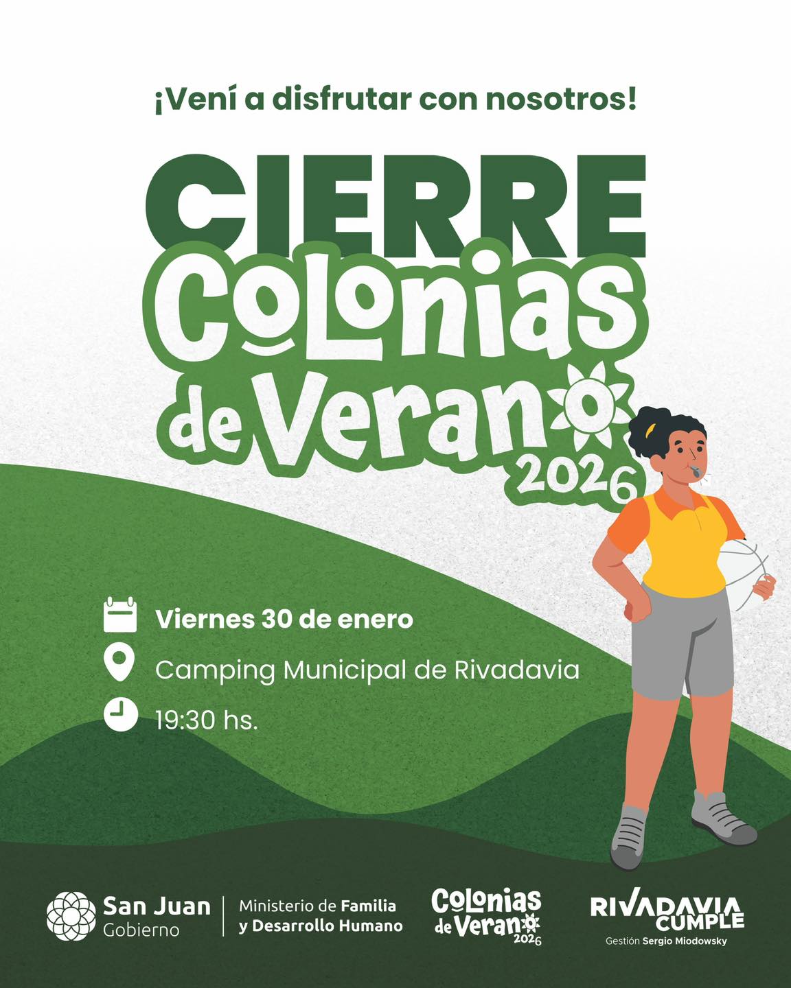 Este viernes, el Camping Municipal de Rivadavia será el escenario de la despedida de las Colonias de Verano 2026, con una noche para disfrutar en familia.