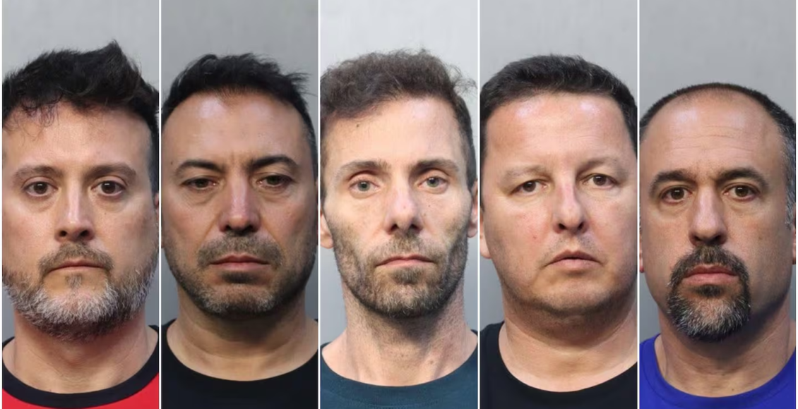 Los cincos argentinos detenidos por robo en Miami: Diego Luis Xiccato, Mauricio Ariel Aparo-Orlando, Sebastián Luis Moya, Juan Manuel Zuloaga-Arenas y Juan Pablo Rua.