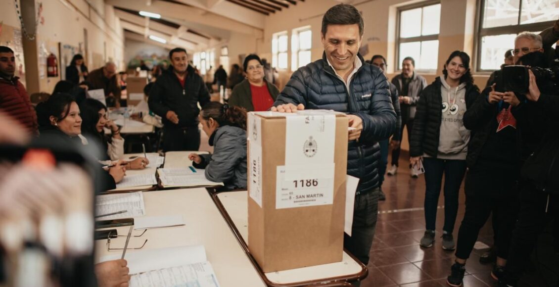 Cristian Andino candidato a vicegobernador votó en la escuela Juan Larrea, en San Martín