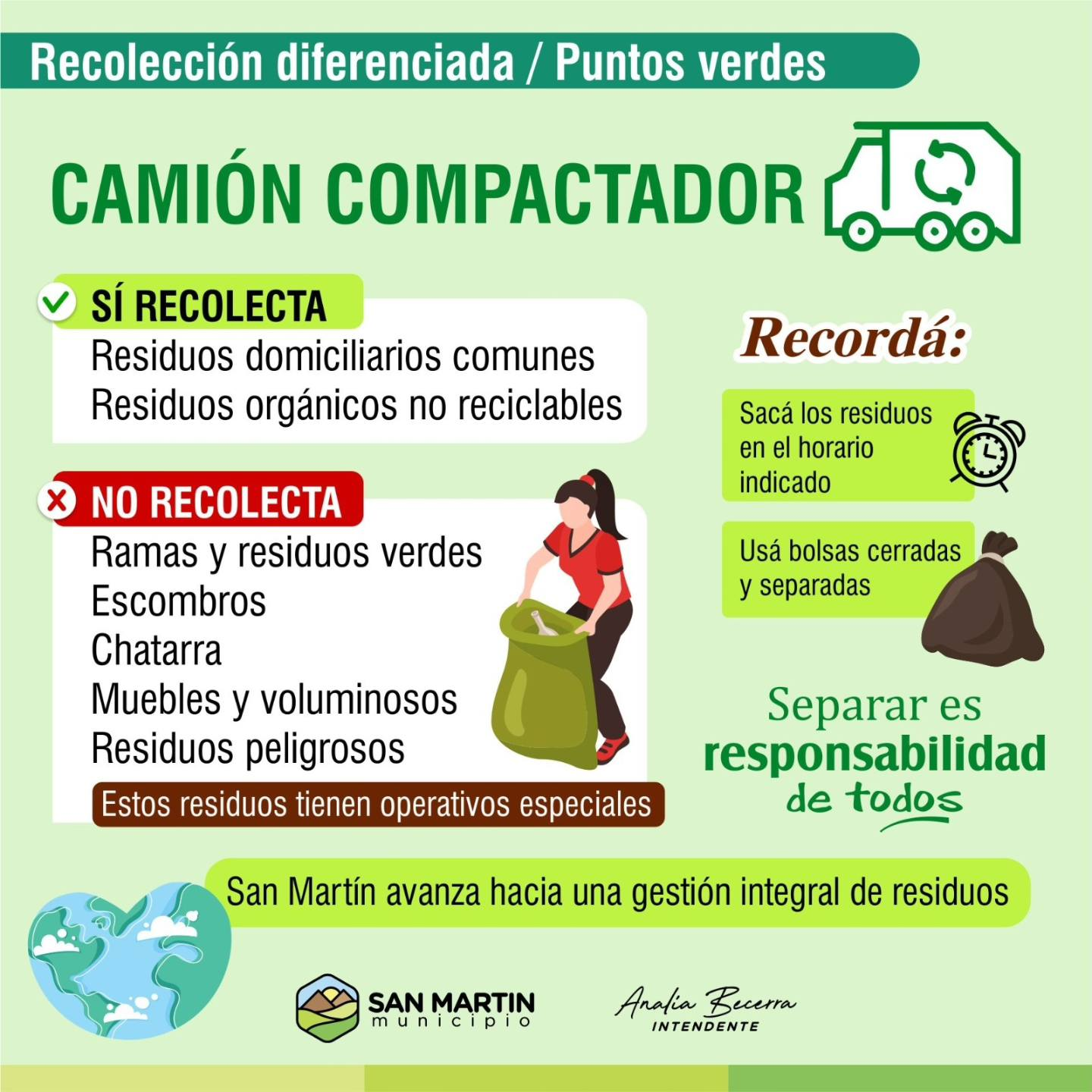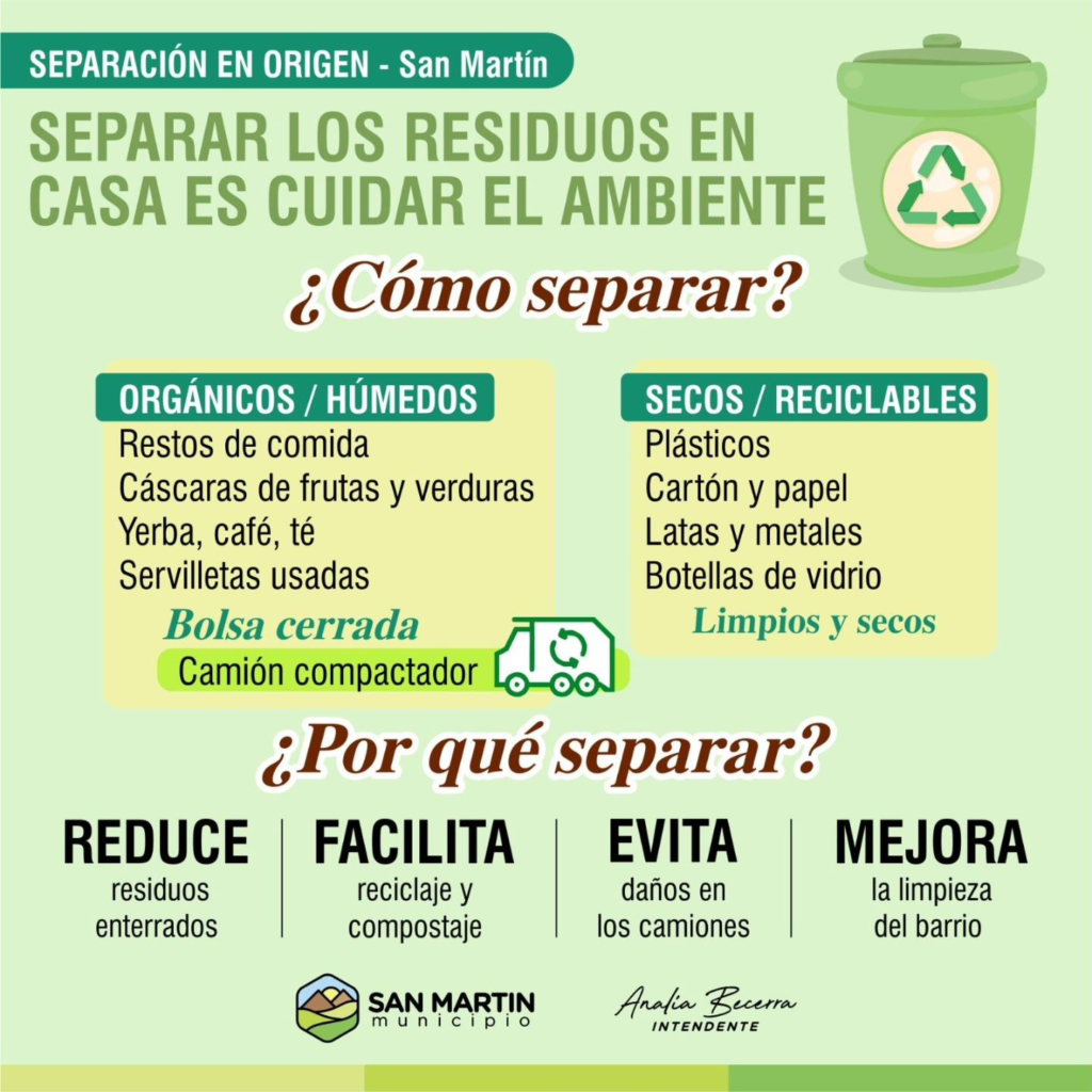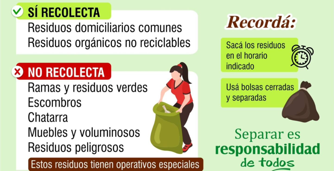 Una campaña municipal destaca la importancia de separar basura en casa para avanzar hacia una gestión ambiental más responsable, con operativos diferenciados para residuos domiciliarios, reciclables y especiales.