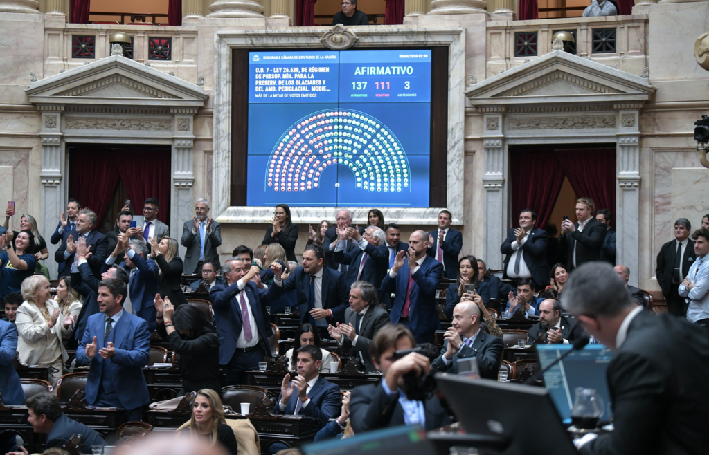 La Cámara de Diputados de la Nación Argentina aprobó este miércoles la modificación de la Ley de Glaciares, en una votación que reflejó un amplio respaldo al proyecto impulsado por el oficialismo.