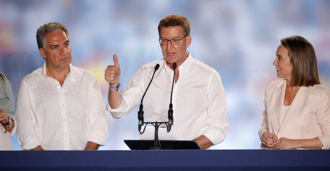 El conservador Partido Popular de Alberto Núñez Feijóo se colocó por delante del PSOE con 136 escaños frente a los 122 de los socialistas de Pedro Sánchez, en tanto que la ultraderecha Vox es la tercera fuerza, con 33 escaños, y la plataforma de izquierdas Sumar obtendría 31 parlamentarios.