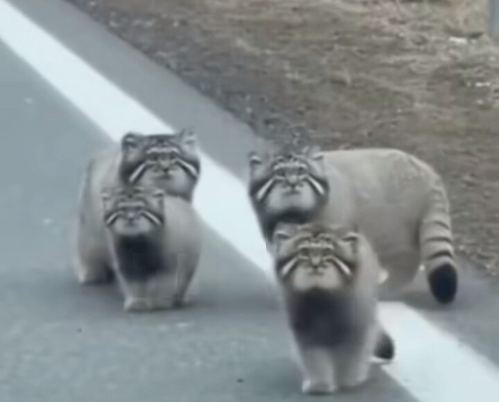 Un grupo de viajeros logró capturar en video a varios Gatos de Pallas (Manul) en las cercanías de una carretera, presumiblemente en las estepas asiáticas donde habita la especie. Las imágenes, que se viralizaron rápidamente, destacan el pelaje denso, la mirada intensa y la forma corporal redondeada que le otorgan a estos felinos una apariencia casi de peluche.