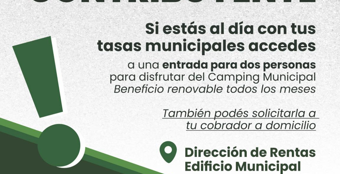 El pago puntual de tasas municipales trae como beneficio mensual una entrada para dos personas al Camping Municipal, convocando a los vecinos a mantener al día sus obligaciones fiscales.
