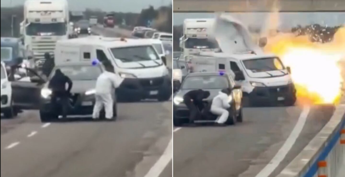 Foto capta el asalto espectacular a un camión blindado en Italia: explosiones y tiroteos conmocionan a Lecce y Brindisi