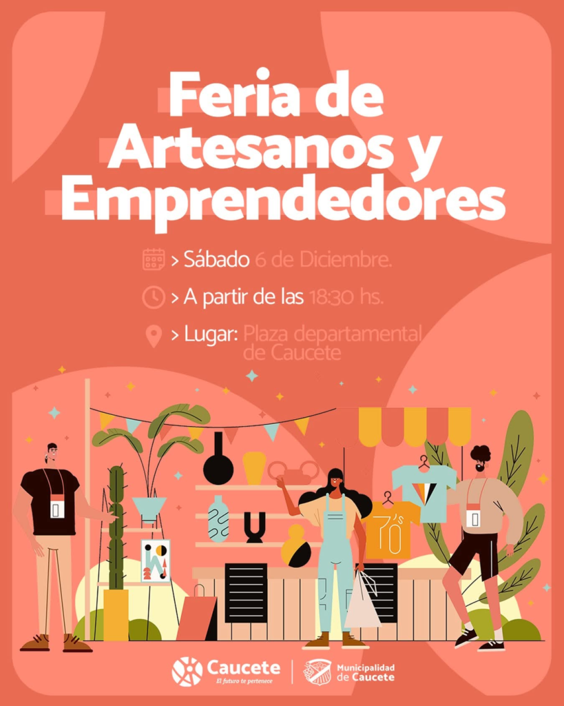 Esta tarde, la Plaza Departamental de Caucete se convertirá en el punto de encuentro para celebrar el esfuerzo y el talento de los vecinos en la Feria de Artesanos y Emprendedores. La cita está programada para comenzar a partir de las 18:30 horas.