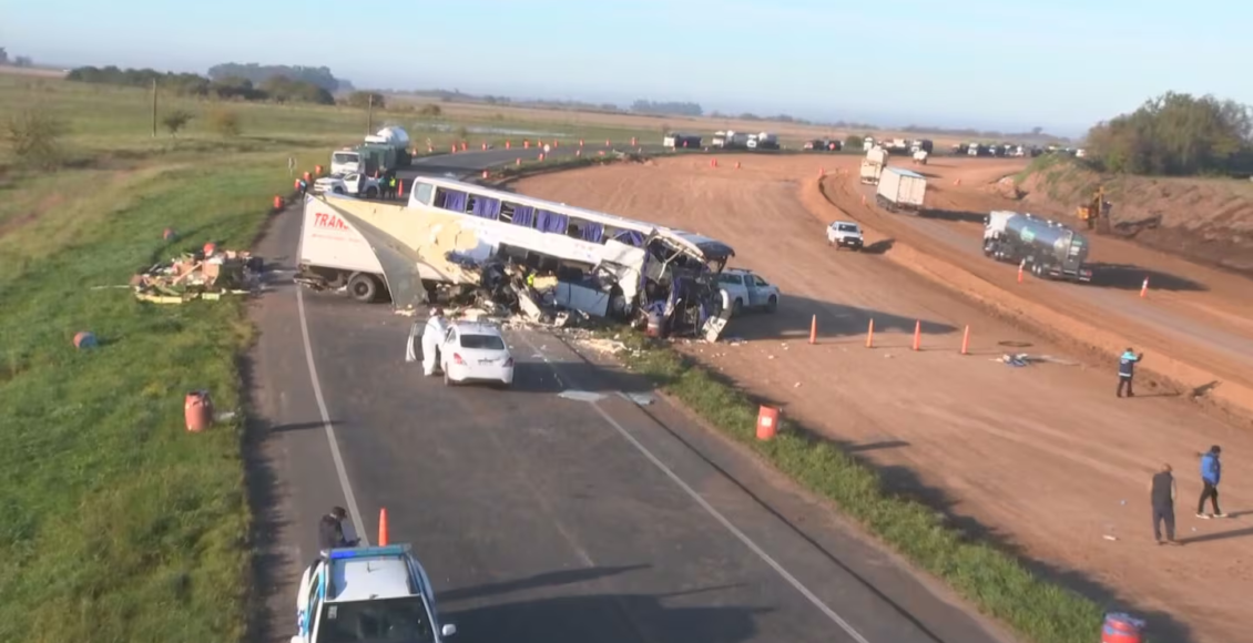Un trágico accidente en la Ruta 3 protagonizado por un camión y un micro de larga distancia dejó cuatro personas fallecidas y otras 16 heridas. Las imágenes del impacto muestran la gravedad de la colisión y la destrucción en ambos vehículos.