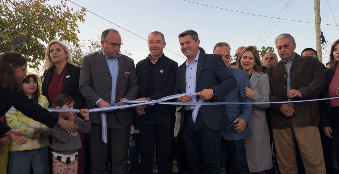 El lunes 26 de mayo, en el departamento Rivadavia, se llevó a cabo la inauguración de las obras de repavimentación de las calles internas de Villa Nueva Argentina, en el marco del Programa de Pavimentos Urbanos, financiado íntegramente por el Gobierno de San Juan. Participaron el gobernador Marcelo Orrego, el vicegobernador Fabián Martín, el intendente Sergio Miodowsky y otras autoridades provinciales y municipales.