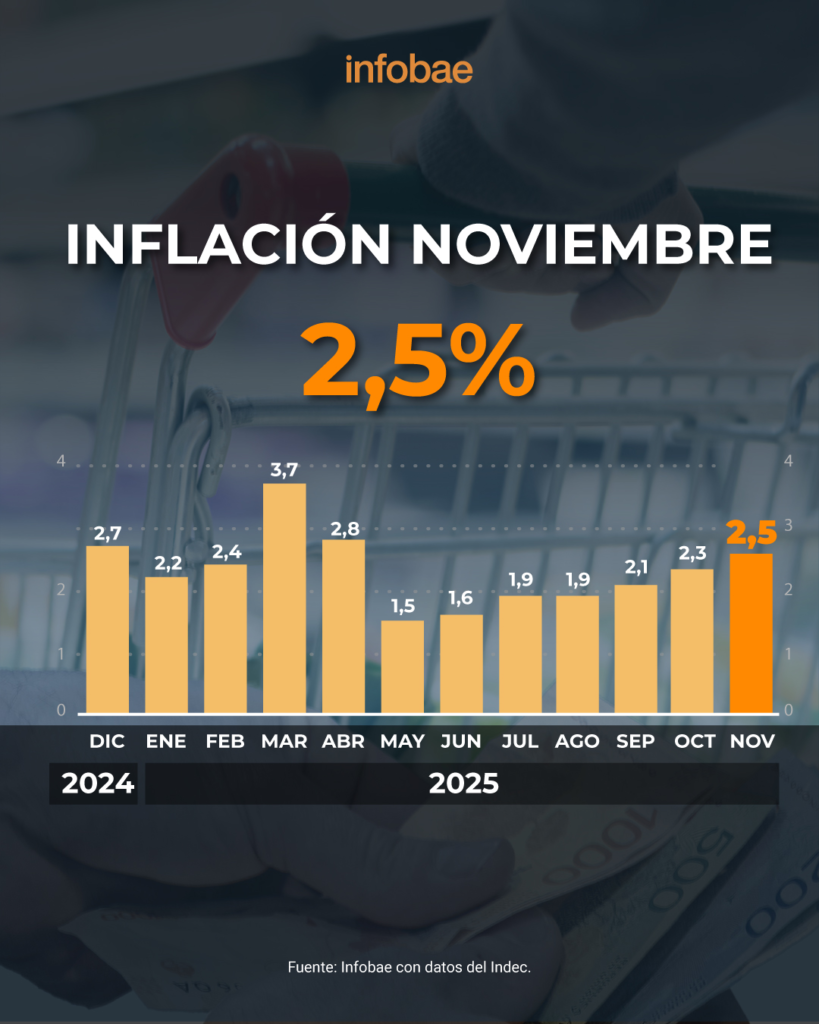El IPC de noviembre se aceleró respecto de octubre, con una subida mensual del 2,5%. En los últimos 12 meses, la inflación se ubica en 31,4%, mientras que el acumulado anual llega a 27,9%.