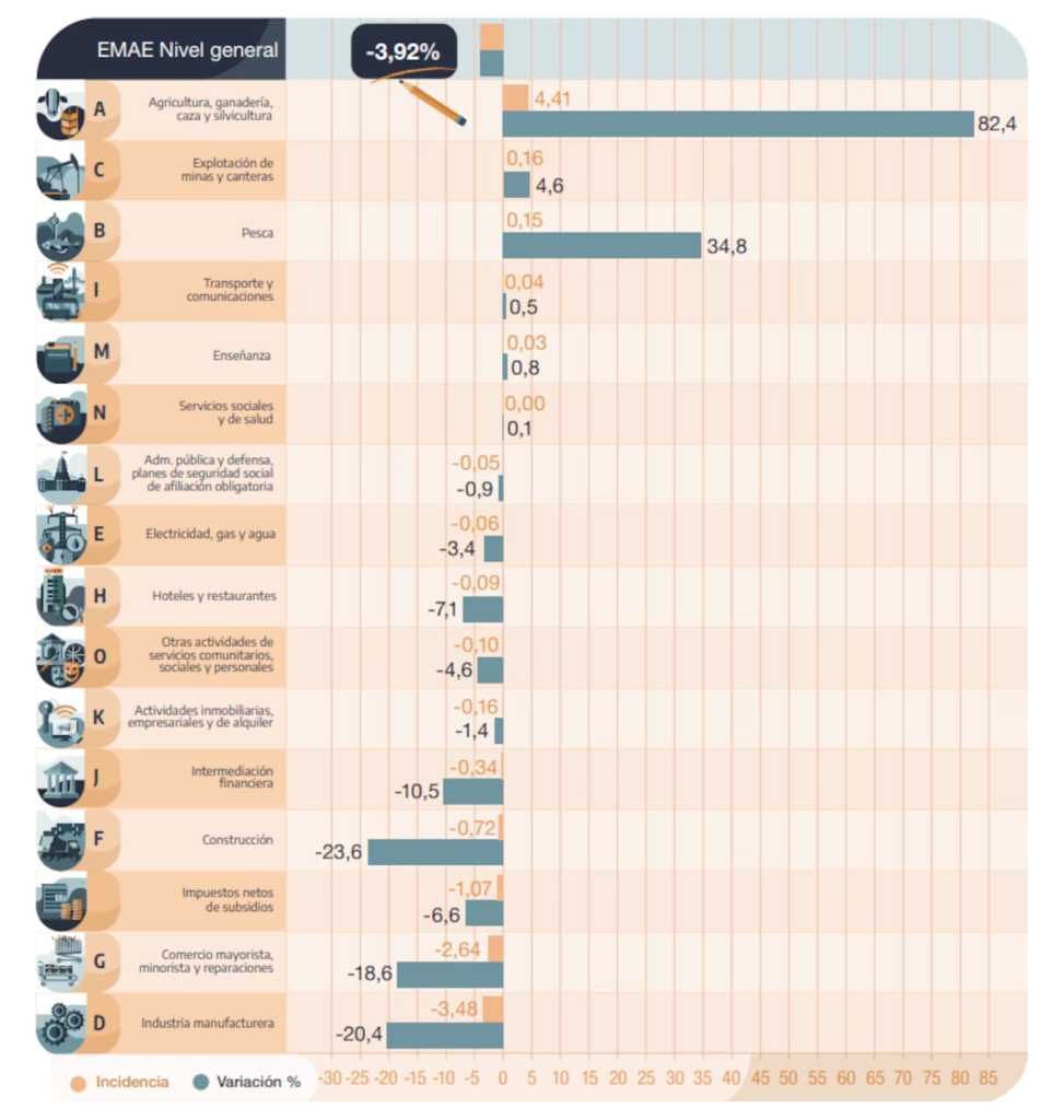Entre los sectores que más se vieron afectados se destacan la industria manufacturera, el comercio y la construcción, que son pilares fundamentales para el empleo y la producción en el país. La contracción en estas áreas pone de relieve las dificultades que enfrentan las empresas para sostener su nivel de actividad en un contexto económico desafiante.
