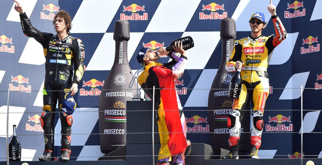 El campeonato de Moto GP es liderado por Bagnaia (Ducati) con 283 puntos. Luego, le siguen: Martín (Ducati) 247; Bezzecchi (Ducati) 218; Brad Binder (KTM) 173; Aleix Espargaró (Aprilia) 160; Zarco (Ducati) 147; y Marini (Ducati) 135.