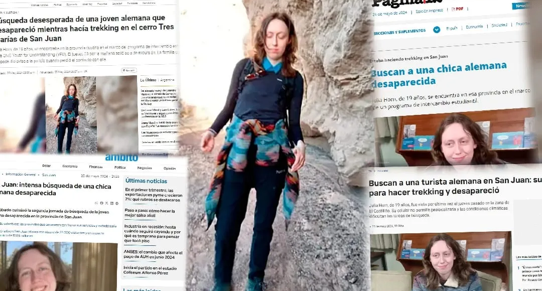 Ya inició el tercer día de búsqueda de Julia Horn, la joven estudiante alemana que se extravió en el cerro Tres María, en inmediaciones del Dique de Ullum. El gran despliegue policial y la noticia que conmocionó a todo San Juan, ahora, hace lo propio en el país, luego de que importantes medios de comunicación colegas replicaran lo ocurrido.