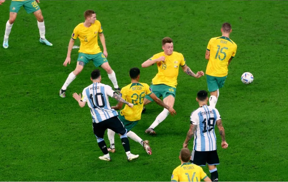 Australia sintió el golpe y vaya que así fue, sobre todo porque el plan que vendió Graham Arnold en la previa, para anular a Messi, fracasó desde pitazo inicial. Es más, el DT casi lo lamenta otra vez a los nueve, cuando el capitán lo intentó con un derechazo a la cara externa de la red, tras un gran pase de Ángel Di María.