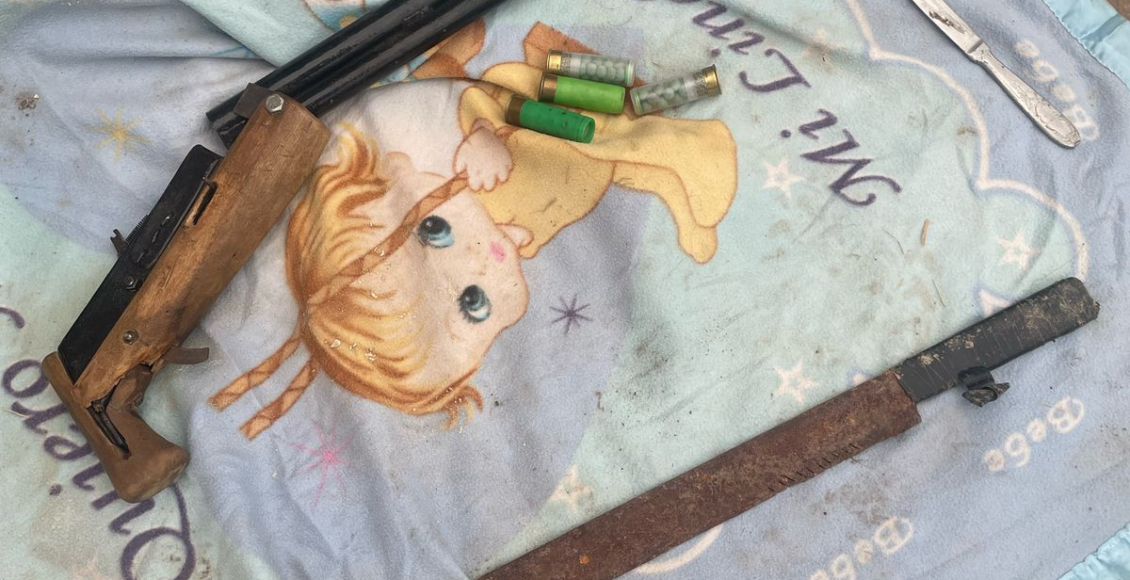 En el lugar se secuestró una tumbera, y en un posterior rastrillaje los efectivos hallaron otras cuatro armas de fabricación casera y un machete de aproximadamente 65 centímetros de largo.