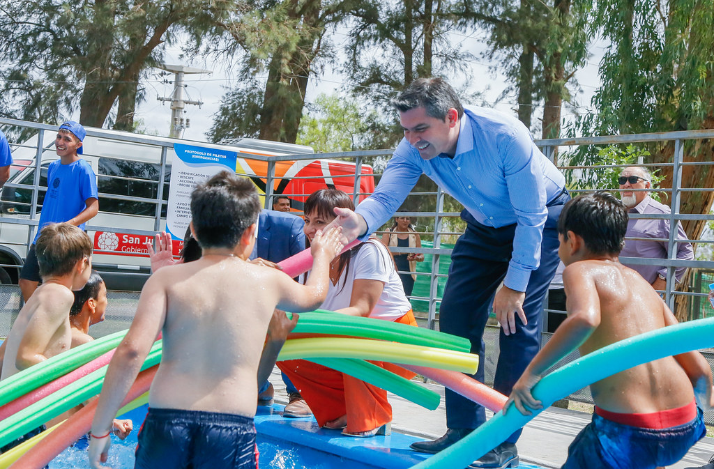 Posteriormente, el mandatario destacó que son “25.000 las personas que están disfrutando de estas colonias de verano. Son unos 90 centros que hay en los 19 departamentos de San Juan. Hacemos un gran esfuerzo, pero lo hacemos con alegría, porque este es el derecho de la infancia, de nuestros adultos mayores y de las personas con discapacidad”.