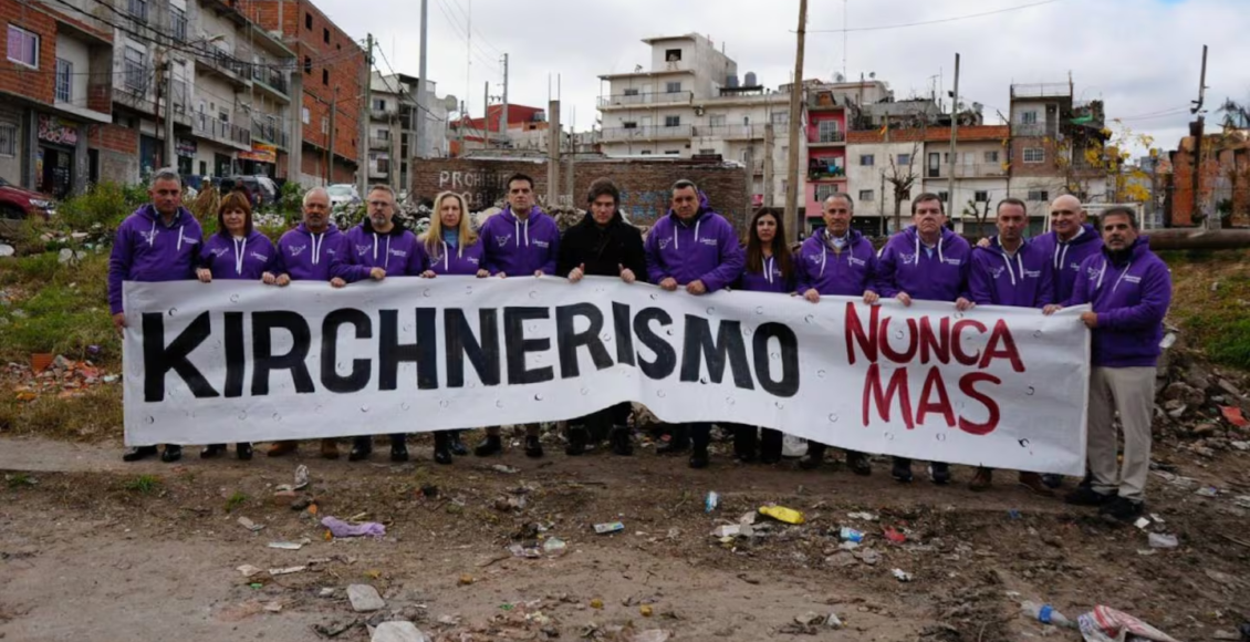 En la escena, un cartel colgado en el lugar rezaba: “Kirchnerismo nunca más”, reflejando el eje de la campaña libertaria. La visita de Milei busca fortalecer su presencia en esa zona y captar el apoyo de electores que cuestionan el modelo oficialista, en un contexto electoral que promete ser muy disputado.