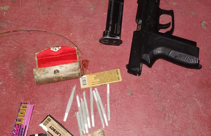 Al abordarlos para obtener información, uno de ellos se levantó repentinamente, negándose a proporcionar sus datos personales e intentando huir del lugar. En el proceso, arrojó al suelo un arma de fuego tipo pistola de color negro, que fue inmediatamente confiscada por las autoridades.