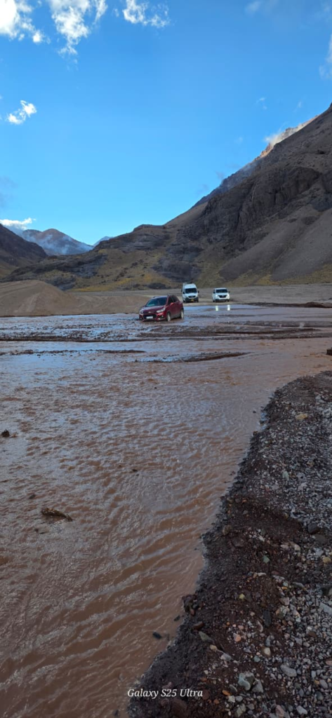 En estos momentos, personal de Vialidad Provincial está llevando a cabo el rescate de una familia que quedó atrapada por una bajada decreciente en la zona de Arroyo San Javier, en el Paso internacional por Agua Negra.
