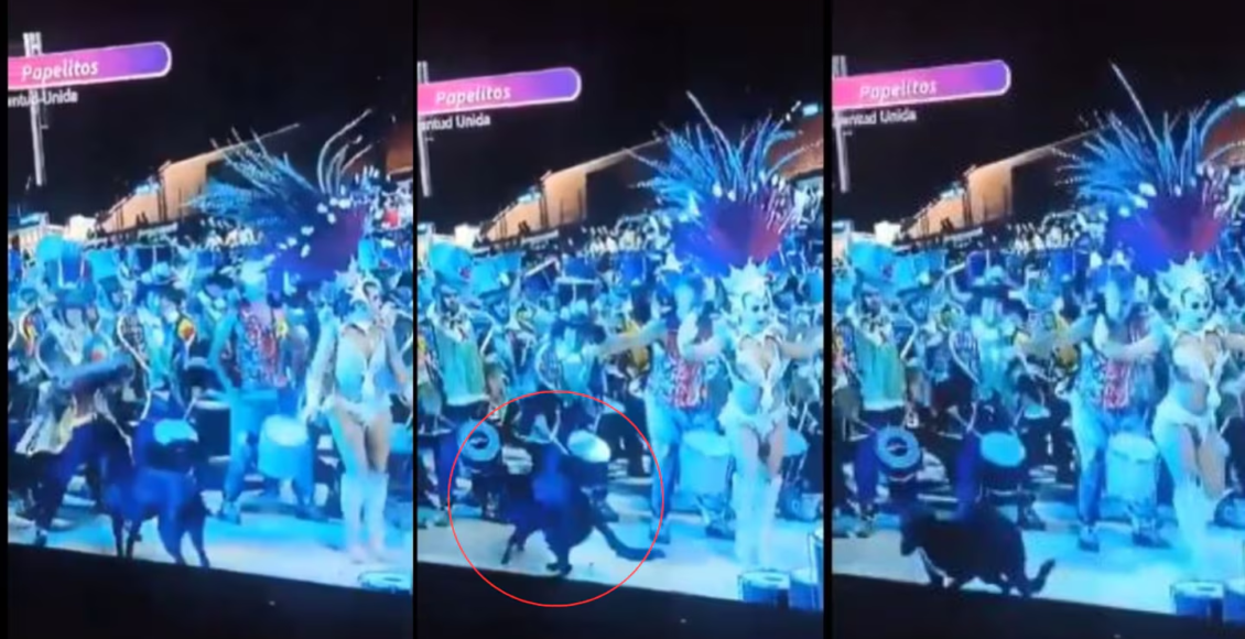 Las imágenes muestran al animal corriendo desorientado entre los bailarines, mientras uno de los participantes de la comparsa intenta sacarlo del lugar propinándole un golpe con un objeto contundente. Este acto fue rápidamente repudiado por los presentes y se viralizó en las redes sociales, donde cientos de usuarios expresaron su repulsión y exigieron justicia.