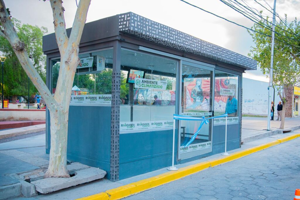La primera parada está instalada en Plaza Madre Universal y forma parte de un plan integral que contempla la construcción de seis paradas inteligentes en puntos estratégicos del departamento, con el objetivo de elevar la calidad del servicio, brindar mayor comodidad y avanzar hacia una Rivadavia más moderna e inclusiva.