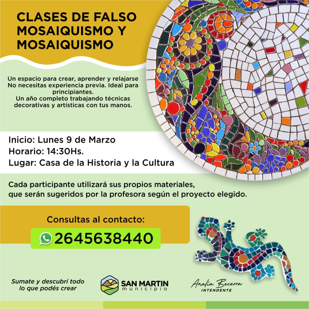 San Martín amplía su oferta cultural: llega un taller abierto de mosaiquismo y falso mosaiquismo