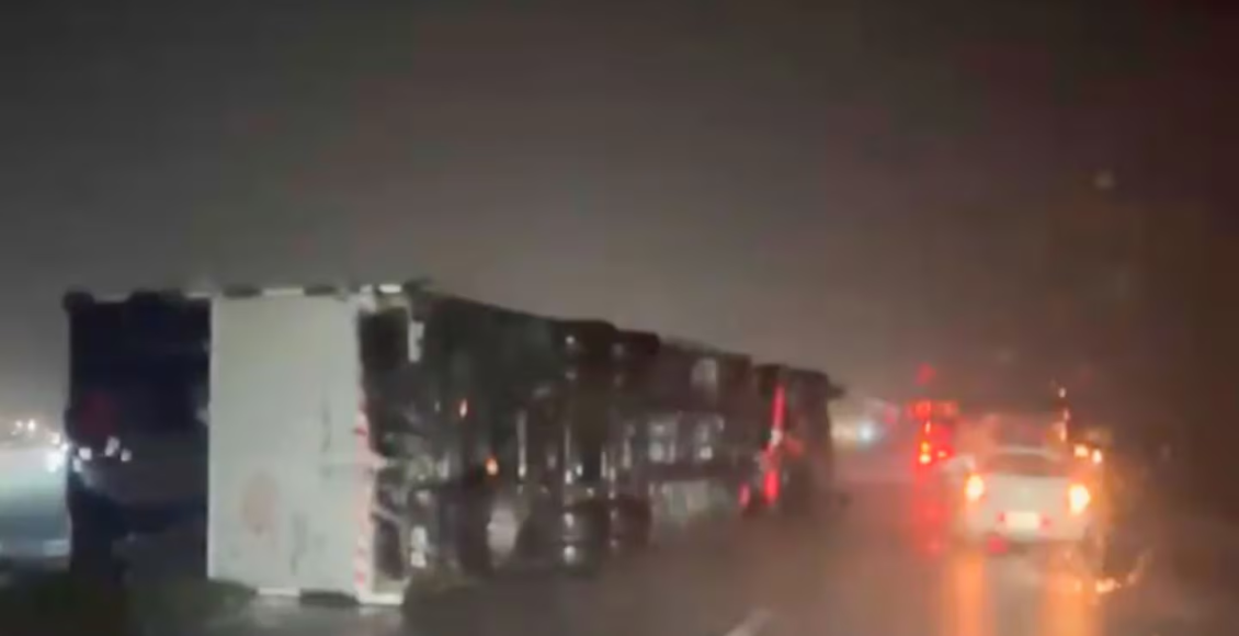 se desplomaron producto de los fuertes vientos. Además, varios de los camiones que se encontraban estacionados en el predio, sumados a otros que circulaban por la ruta 9, terminaron volcados.