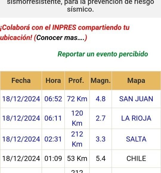 Este miércoles bien temprano, exactamente a las 6.52, un importante movimiento telúrico se registró en San Juan. Según los primeros datos que aportó el Insituto Nacional de Prevención Sísmica, indicaron que fue de 4,8 grados de magnitud en la escala de Richter.