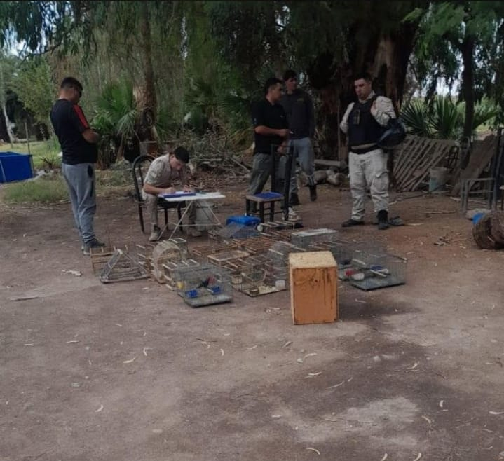 En una acción conjunta de las unidades rurales 1 y 2 de la policía de San Juan, se rescataron 110 aves autóctonas y silvestres en Albardón y Caucete, con tres personas detenidas y el secuestro de jaulas y trampas.