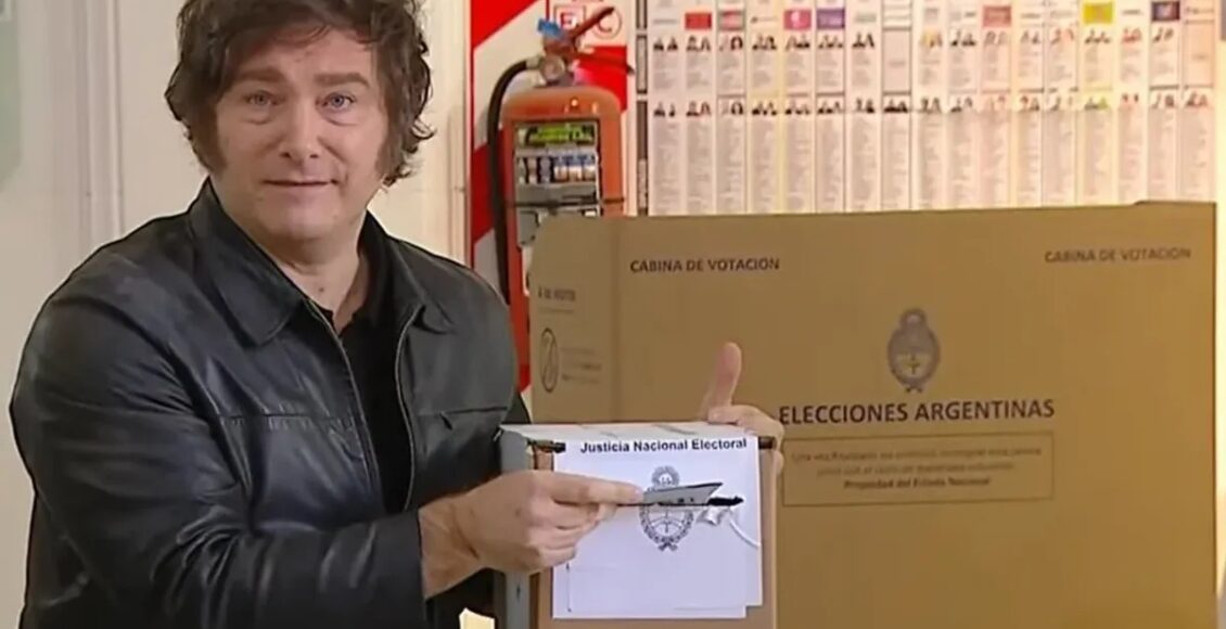 Con un semblante de tranquilidad, Milei depositó su voto a las 11.07 en la urna de la mesa 2211.