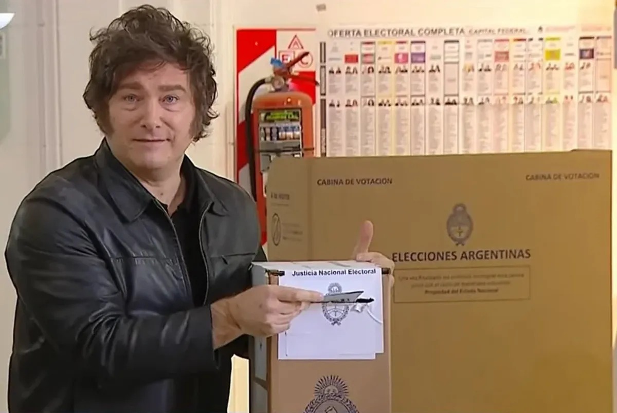Con un semblante de tranquilidad, Milei depositó su voto a las 11.07 en la urna de la mesa 2211.